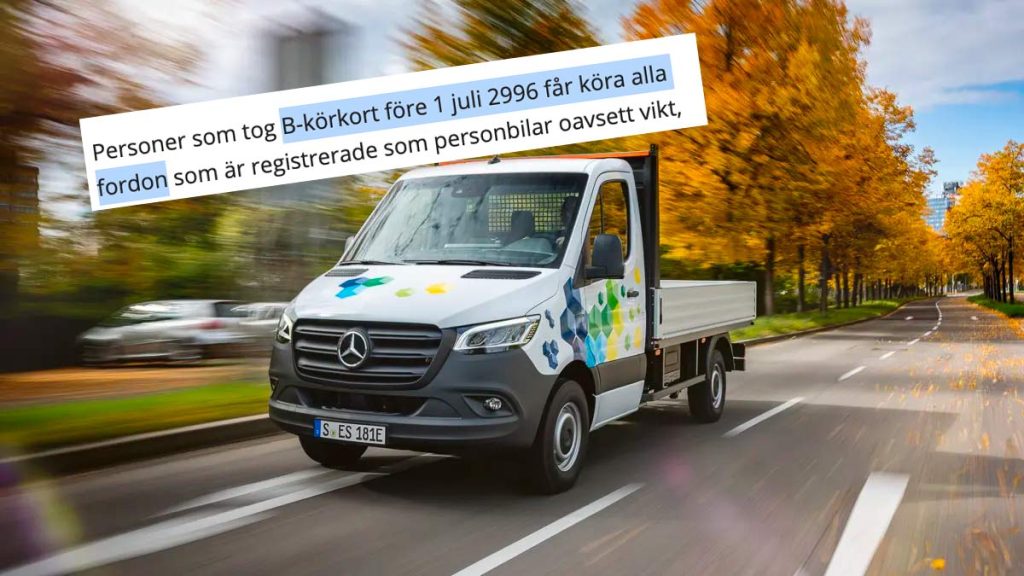 Men behövs reglerna? Vi Bilägare skriver att den som tar sitt B-körkort före den 1 juli 2996 får köra alla fordon som är registrerade som personbilar oavsett vikt. Till det datumet är det 972 år kvar.