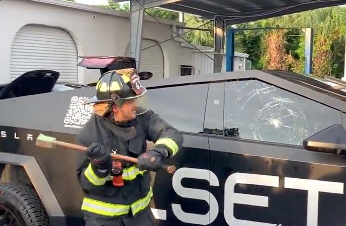 Om olyckan är framme i en Tesla Cybertruck kan det vara svårt för brandmännen att ta sig in…